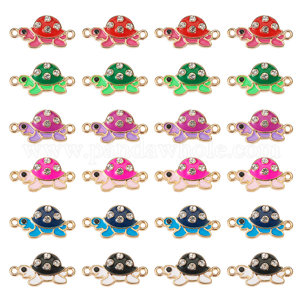 24шт 6 цветной эмалевый сплав подвески разъема, черепаховые звенья с хрустальными стразами, золотой свет, без кадмия, без никеля и без свинца