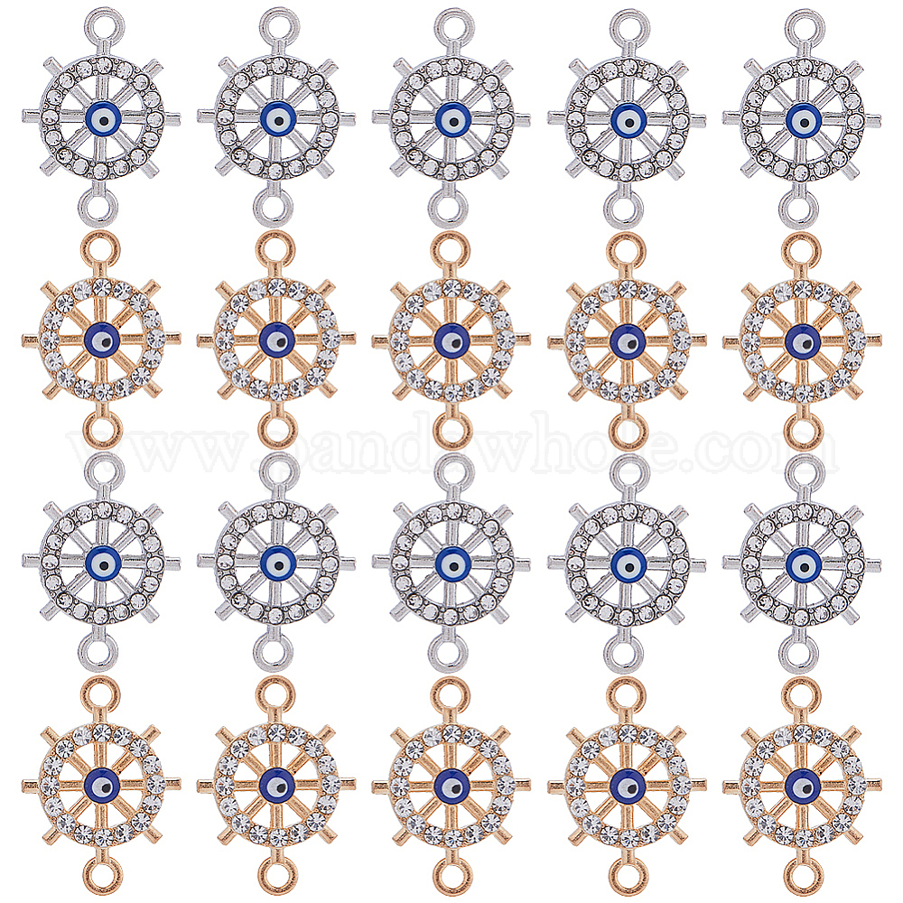 • (52) Непрозрачная лаванда 32 шт. 2 цвета сплава, кристаллы и стразы, подвески-коннекторы, с голубой эмалью, Шлем связывает с дурным глазом, платина и светлое золото, 20x15x2.5 мм, отверстие : 1.8 мм, 16 шт / цвет