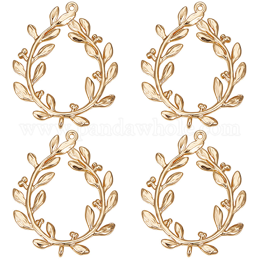 • Настоящее золото 18K 10 шт. латунные подвески для разъемов, венки из оливковых ветвей, реальный 18 k позолоченный, 28x22x1 мм, отверстие : 1 мм