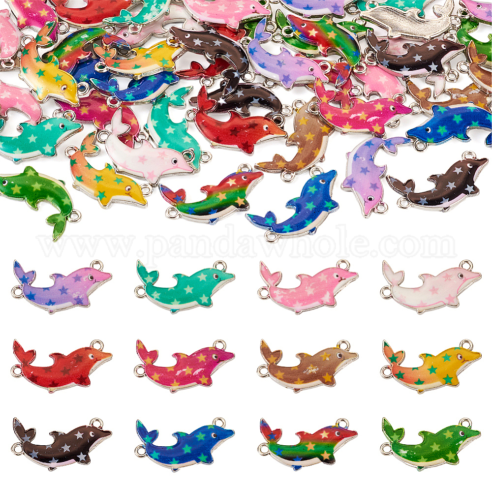 48шт 12 цветной эмалевый сплав подвески разъема, звенья дельфина со звездным принтом, платина