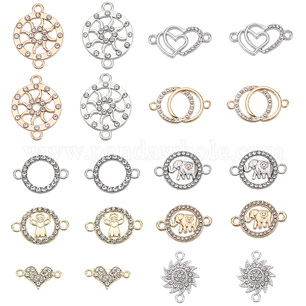 40 шт. 10 стили сплав соединительные подвески с кристаллами горный хрусталь, плоский круглый и кольцо и сердце, разнообразные
