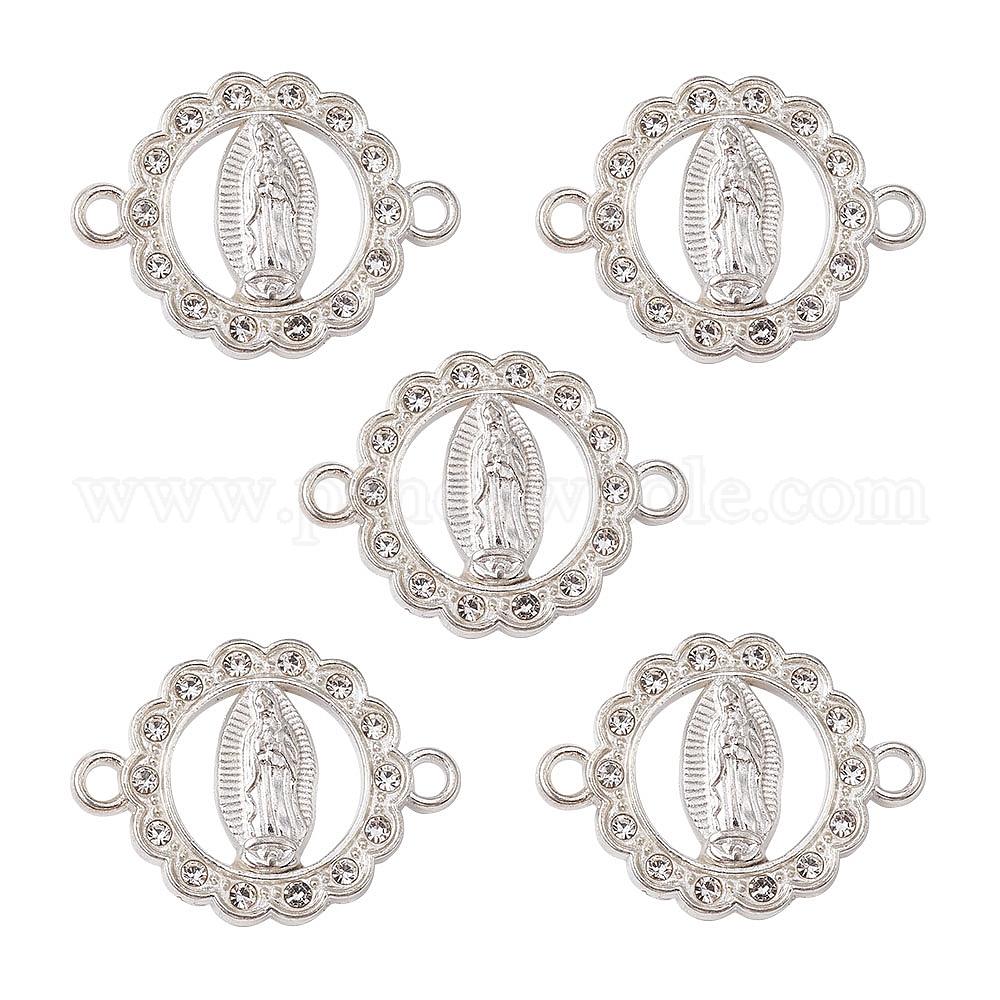 Плоские круглые подвески из сплава, религия дева мария ссылки, с кристально горный хрусталь, никель (02JHR7)