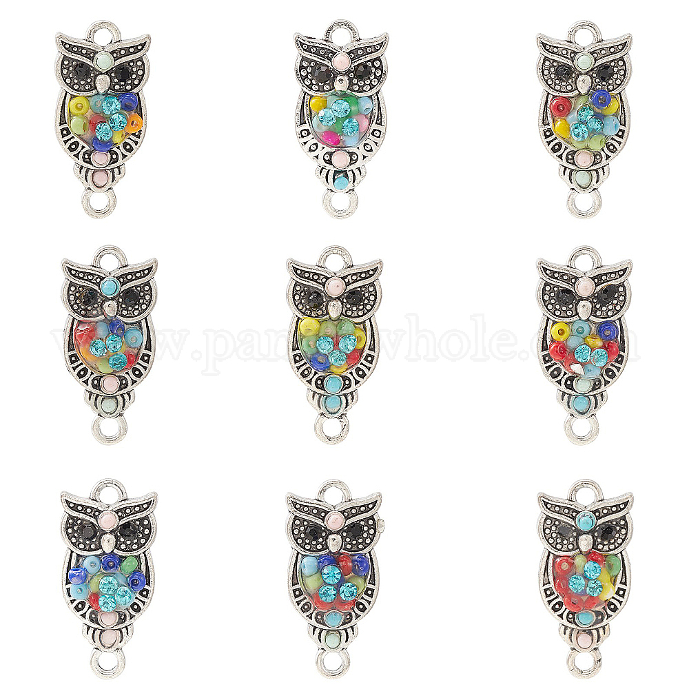 10шт. Подвески из сплава со стразами в форме совы, с разноцветными стеклянными бусинами