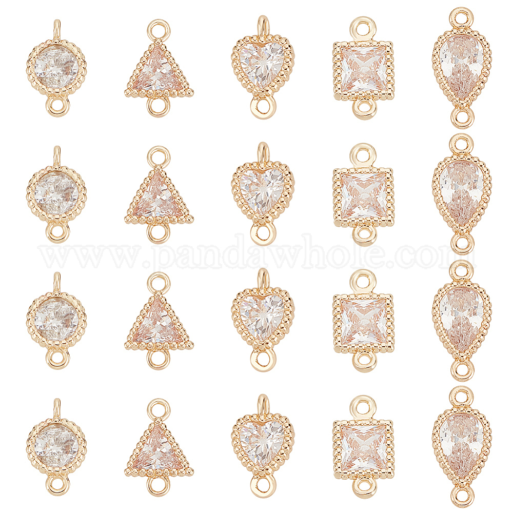 20 шт. 5 стили латуни проложить прозрачный фианит соединитель подвески, геометрические звенья, золотые
