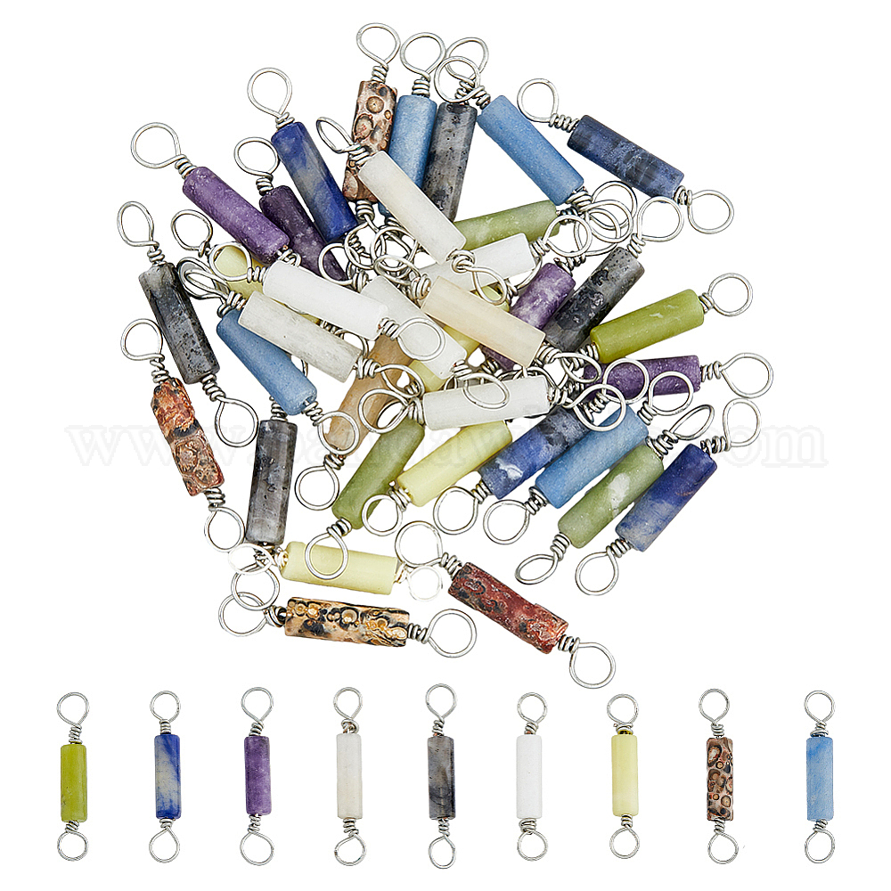 36 шт. 9 стили натуральных смешанных подвесок с драгоценными камнями, звенья колонны из посеребренной латунной проволоки