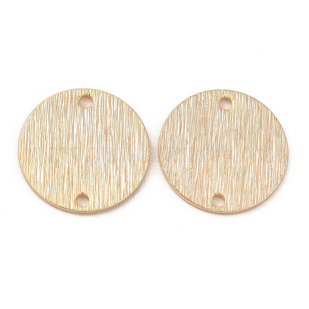 • Настоящее золото 18K Подвески из латуни, текстурированные плоские круглые звенья, реальный 18 k позолоченный, 15x1 мм, отверстие : 1.4 мм