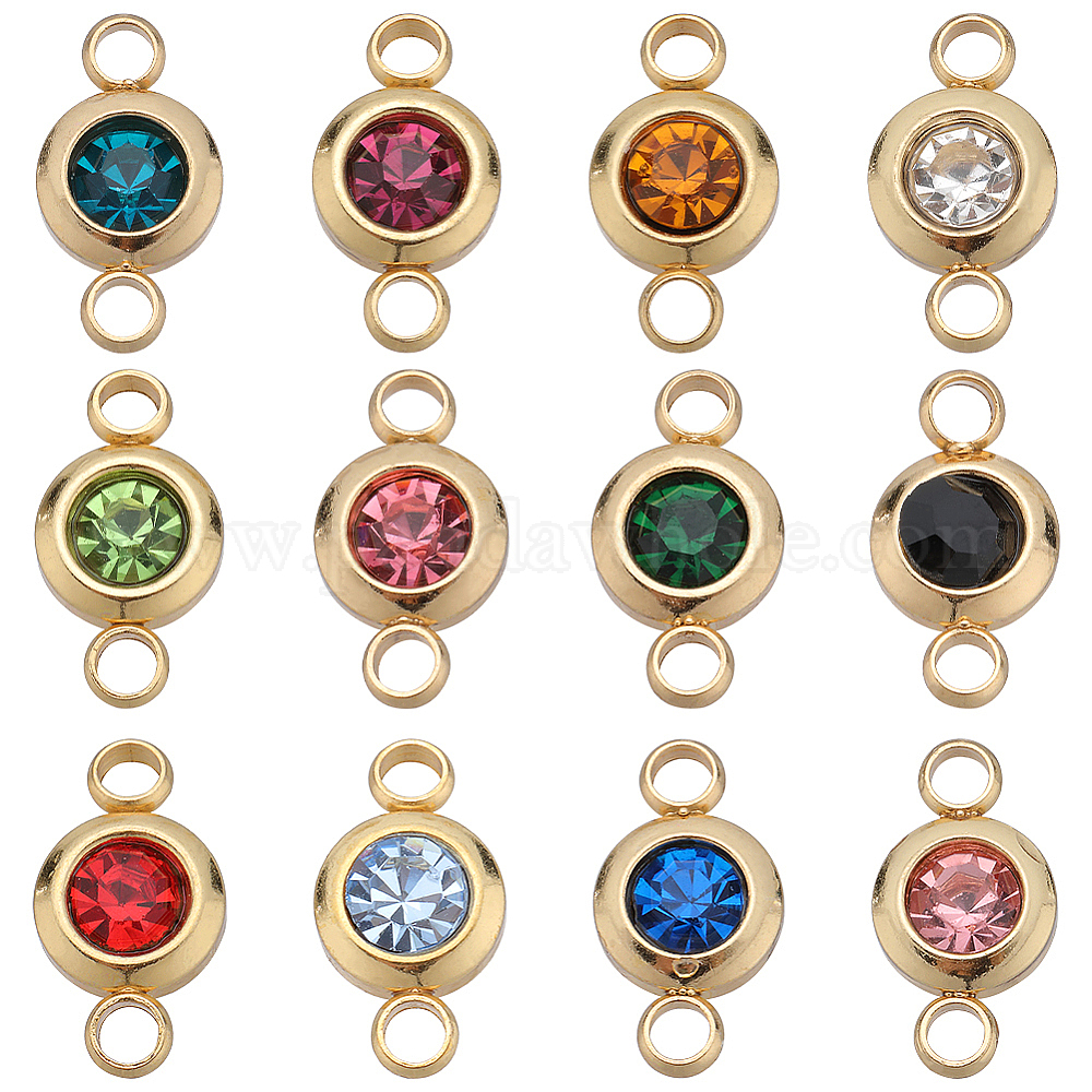 24 шт. 12 цвета 304 подвески-коннекторы из нержавеющей стали со стразами, плоские круглые ссылки, золотые