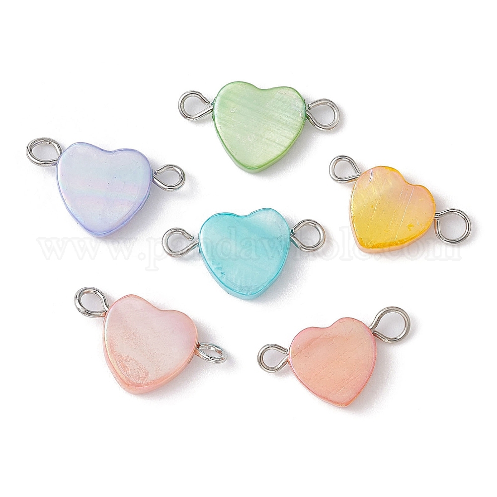 Подвески-коннекторы из натуральной пресноводной ракушки, с двойными железными петлями, сердечные ссылки