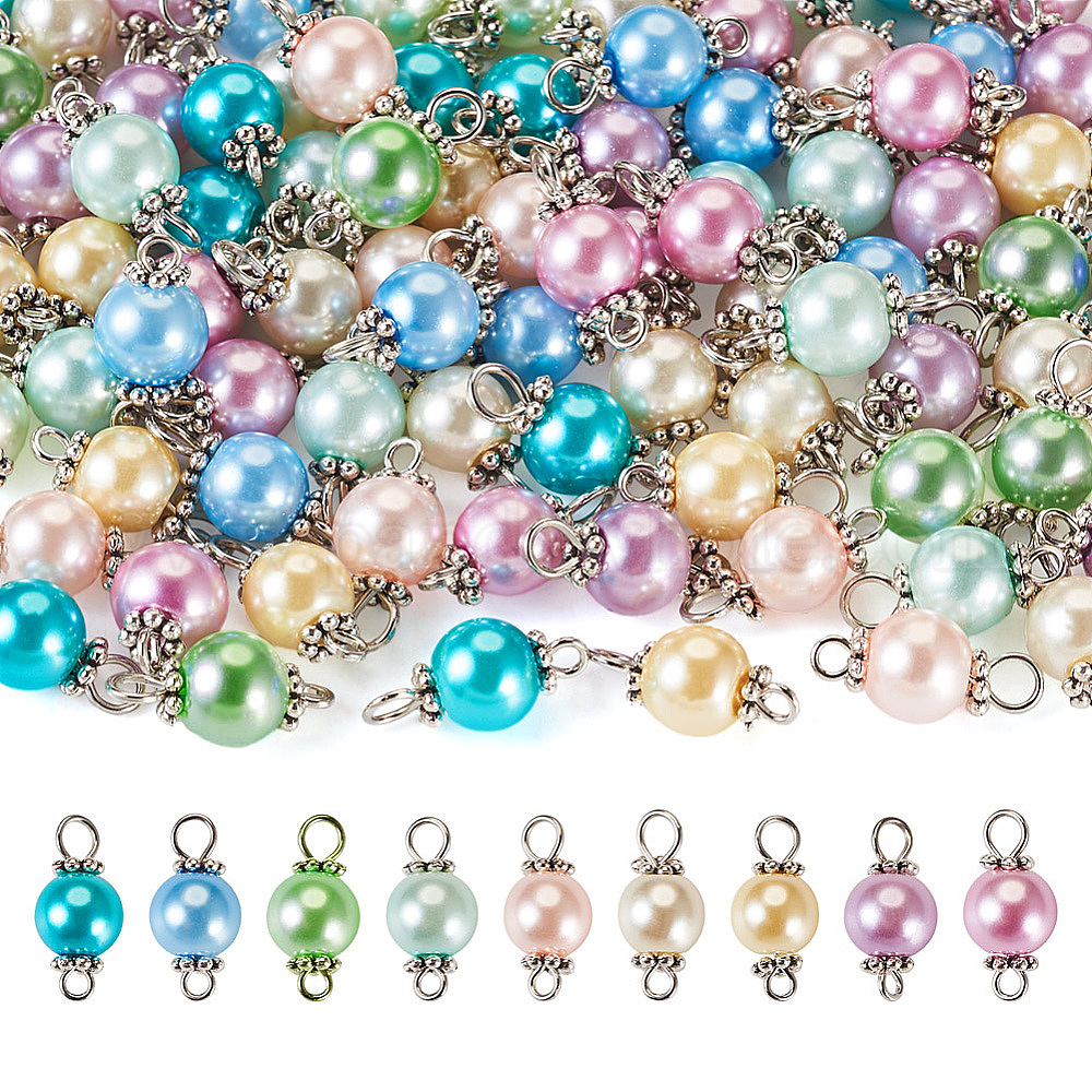 90 шт. 9 цвета перламутровое стекло жемчужный соединитель подвески, круглые ссылки, с двойными петлями из железа платинового цвета