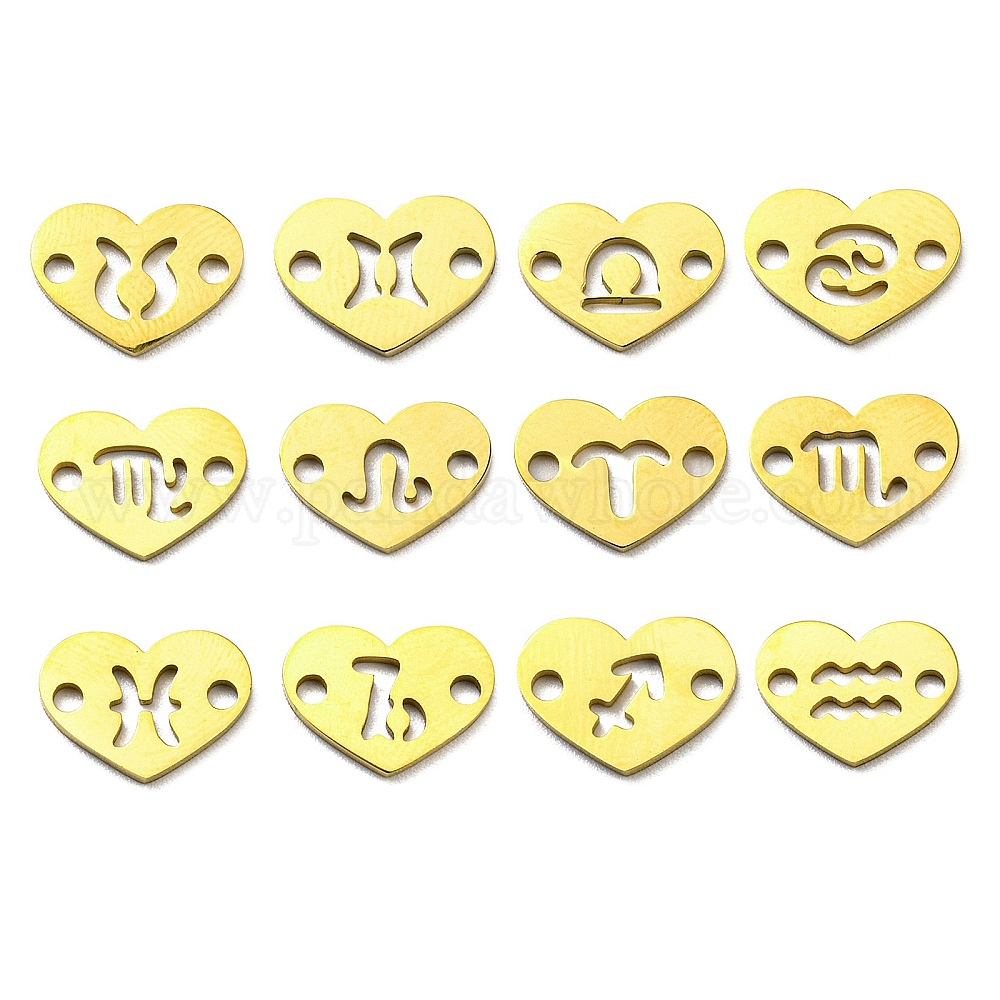 12 шт. 12 стили ионного покрытия (IP) 304 подвески с полым соединителем из нержавеющей стали, сердце со звеньями 12 созвездия