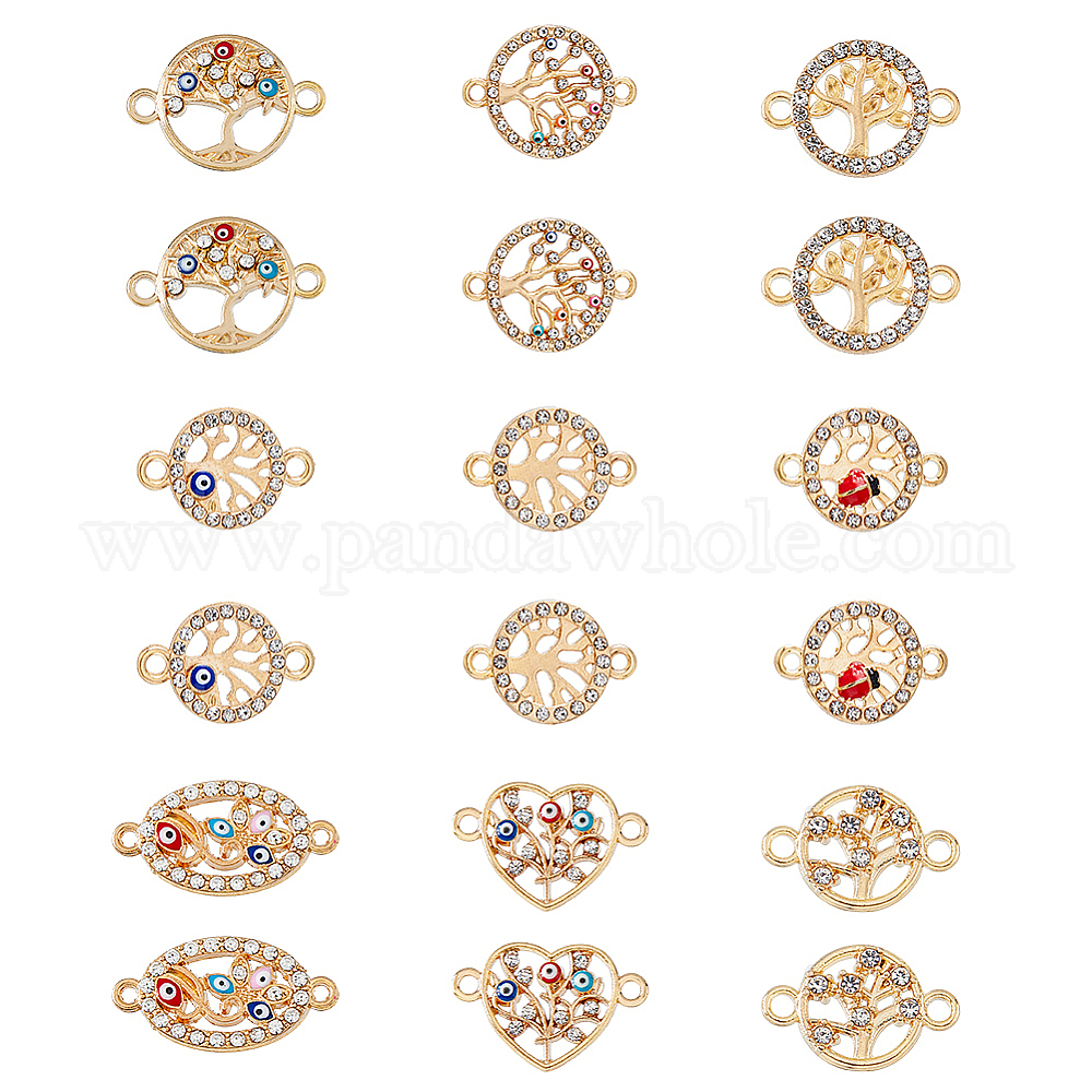 18 шт. 9 стили сплава кристаллы стразы разъем подвески, с эмалью сглаз/божья коровка, древо жизни ссылки, золотые