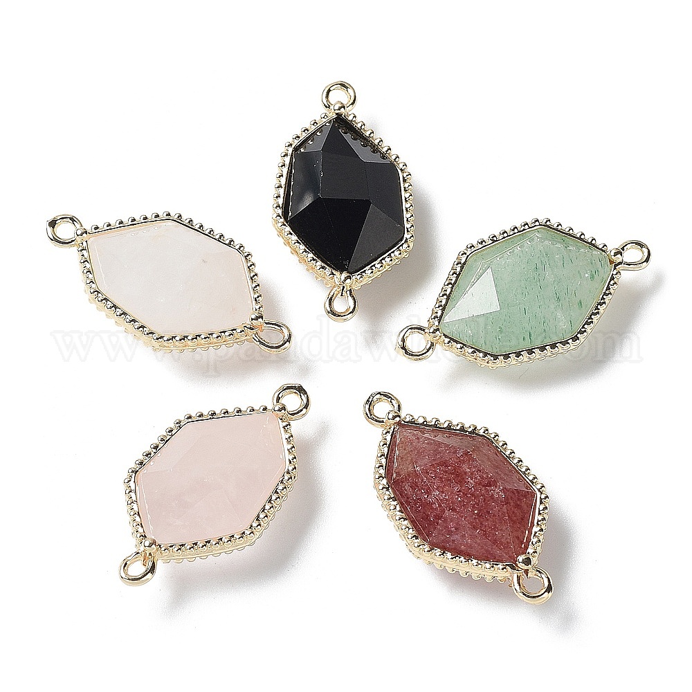 Подвески из натуральных смешанных драгоценных камней, граненые шестигранные звенья с петлями по краям из позолоченной латуни