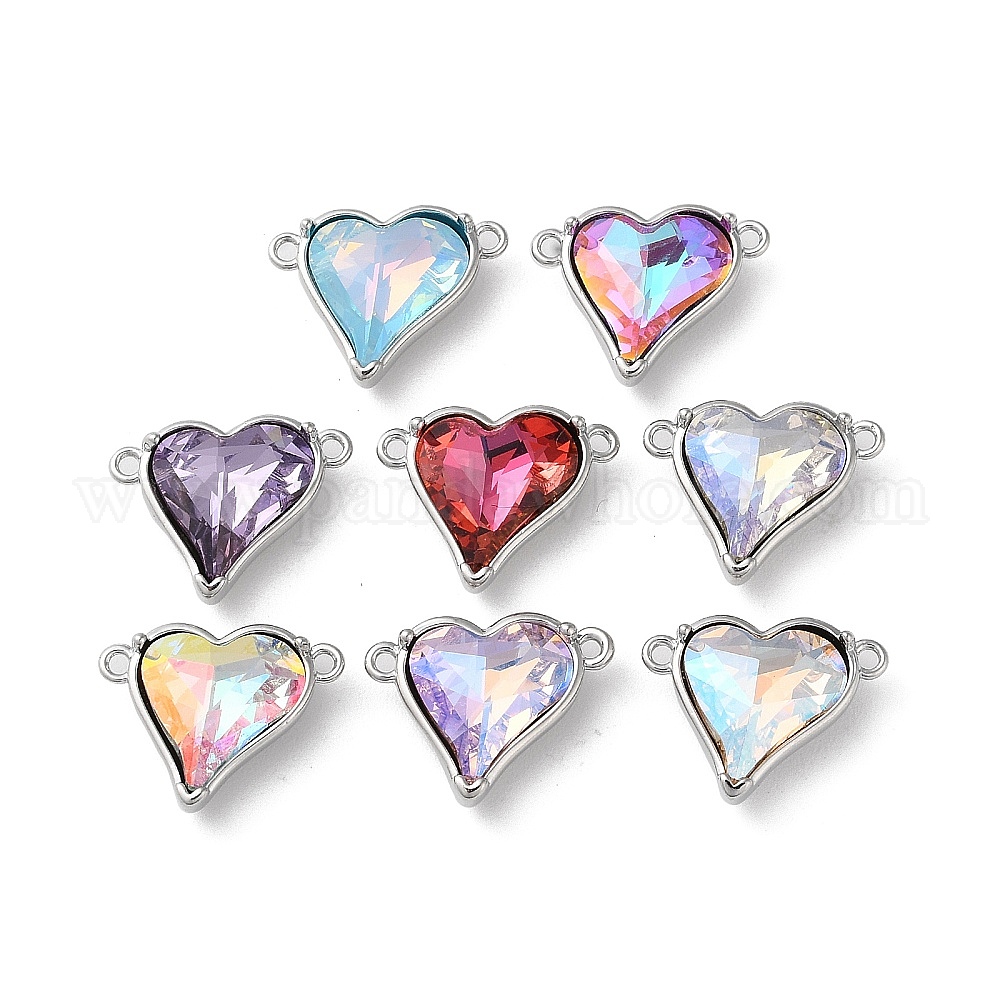 Подвески из латуни и стекла со стразами, сердечные ссылки, без кадмия, без никеля и без свинца, разноцветные (02PGY9)