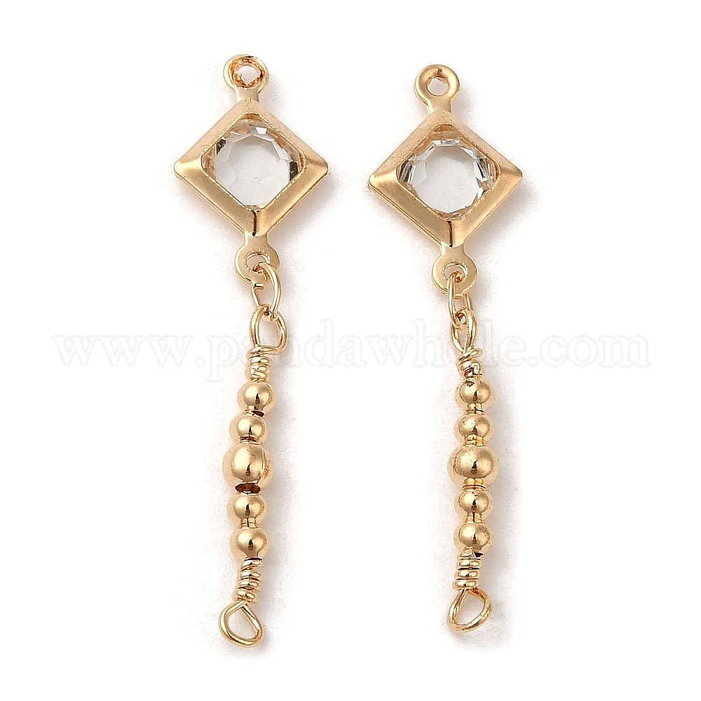 Подвески для стеклянных разъемов, с латунной фурнитурой , без кадмия, без никеля и без свинца, реальный 18 k позолоченный, ромб