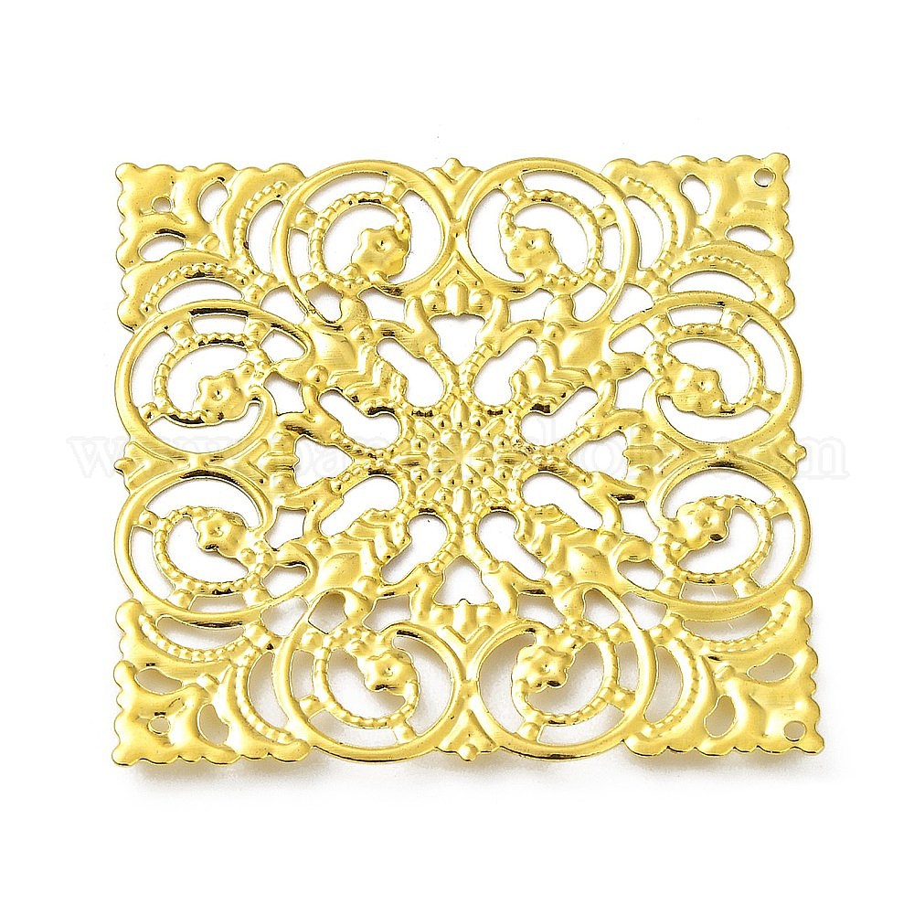 • Золотой Подвески для железного разъема для стойки, ромб, гравированные металлические украшения, золотые, 51x51x0.6 мм, отверстие : 1.4 мм