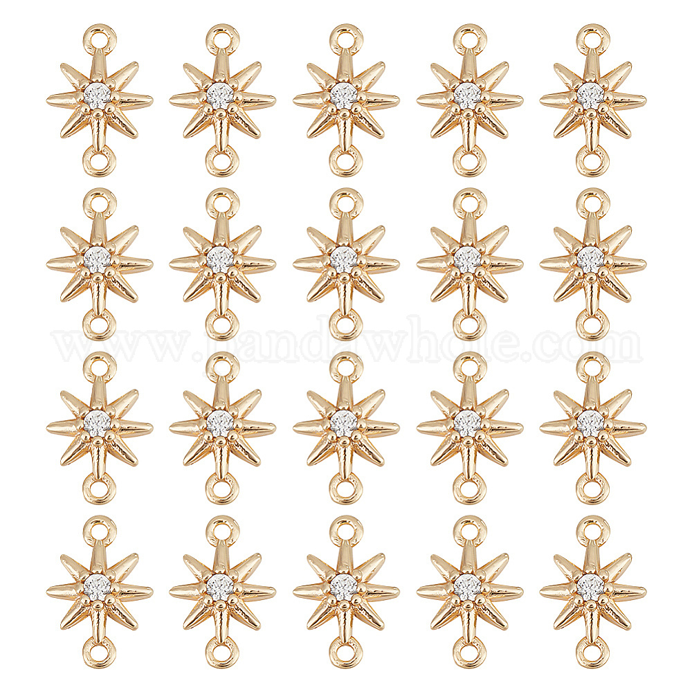 20шт. латунные подвески-соединители с прозрачным кубическим цирконием, без никеля , звездные ссылки