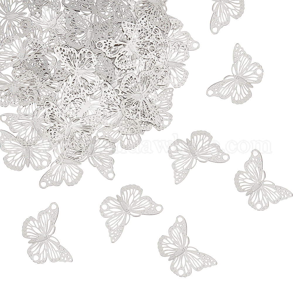 100шт. 304 филигранные соединительные подвески из нержавеющей стали, гравированные металлические украшения, ссылки бабочки