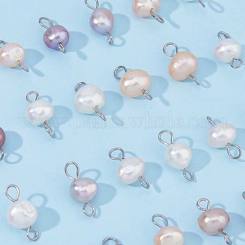 Шармы-соединители из натурального культивированного пресноводного жемчуга, с 304 петлями из нержавеющей стали, самородки