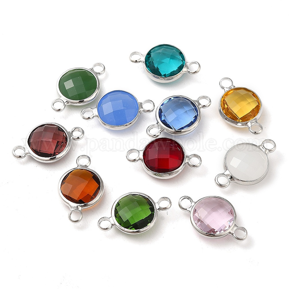 Подвески из латуни с граненым стеклянным соединителем, плоские круглые звенья с платиновым покрытием