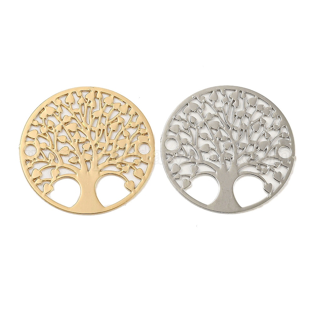 Подвески из латуни с покрытием для стойки, долговечный, без кадмия, без никеля и без свинца, плоский круглый с металлическими украшениями в виде дерева