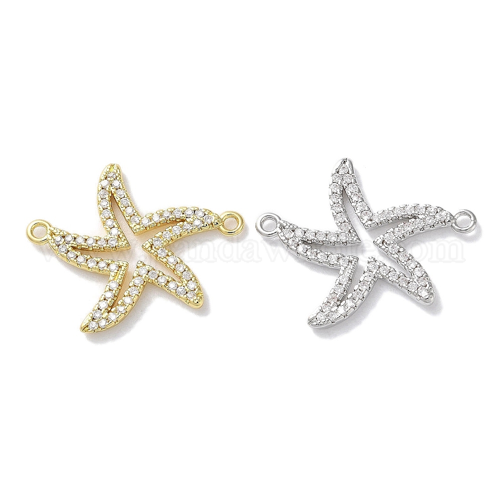 Латунь с покрытием из латуни, микро-паве, прозрачные подвески из кубического циркония, ссылки на морские звезды, долговечный, без свинца и без кадмия