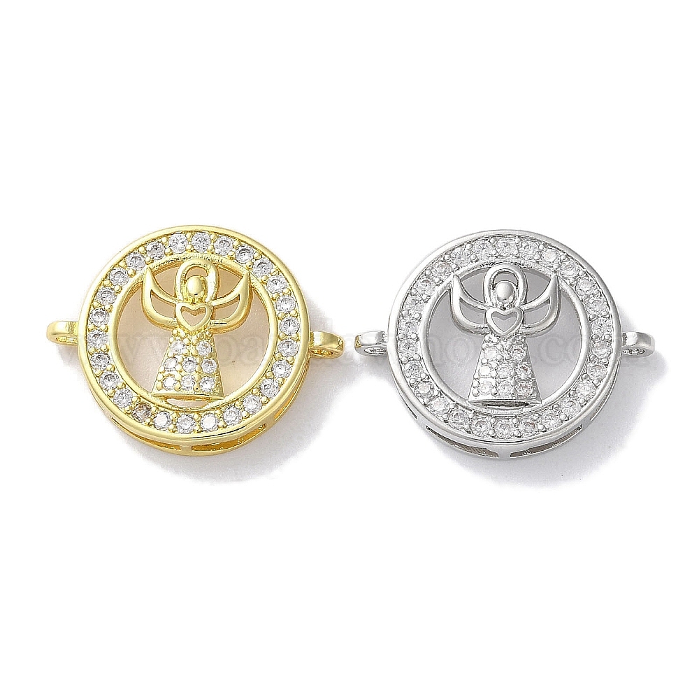 Латунь с покрытием из латуни, микро-паве, прозрачные подвески из кубического циркония, плоский круглый с ангельскими звеньями, долговечный, без свинца и без кадмия