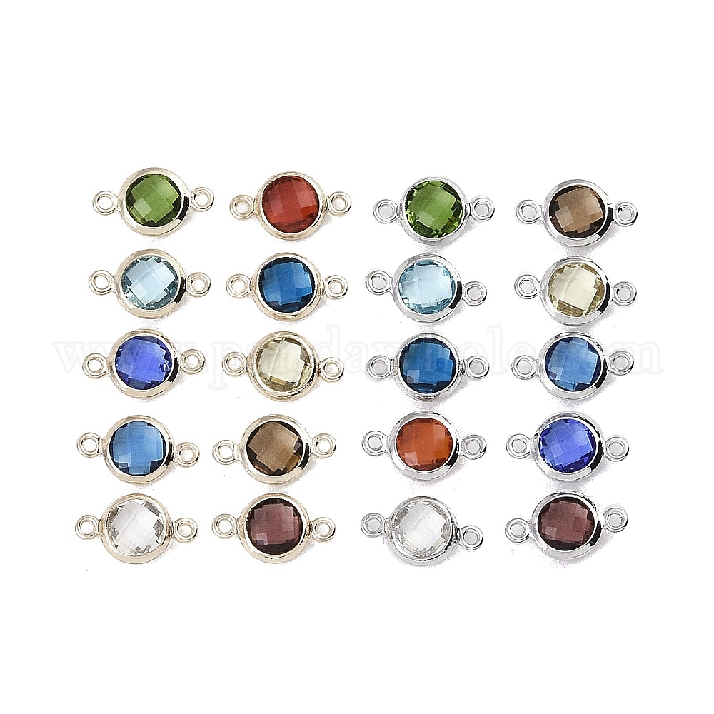 Шармы-соединители из латуни с паве из кубического циркония, плоские круглые ссылки, без кадмия, без никеля и без свинца, разноцветные