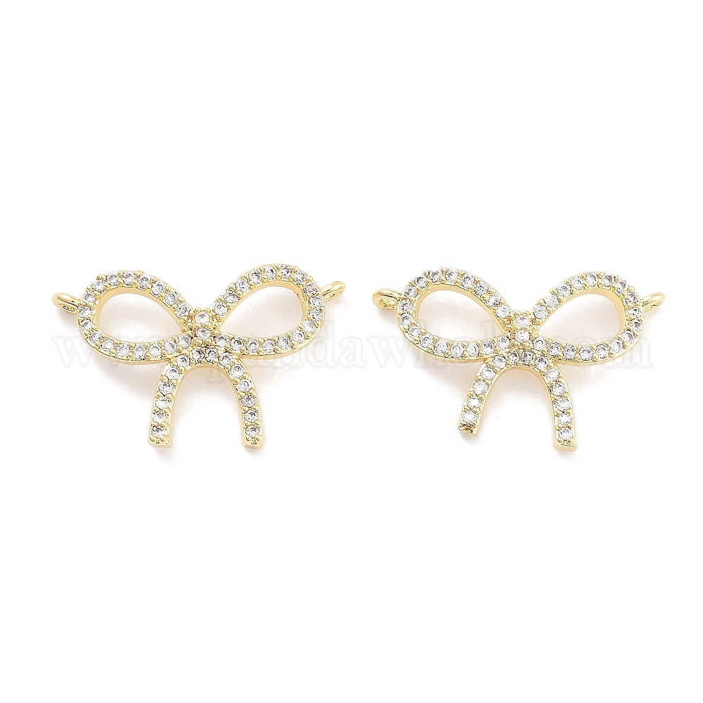 Шармы-соединители из латуни с микропаве из прозрачного кубического циркония, бантом ссылки