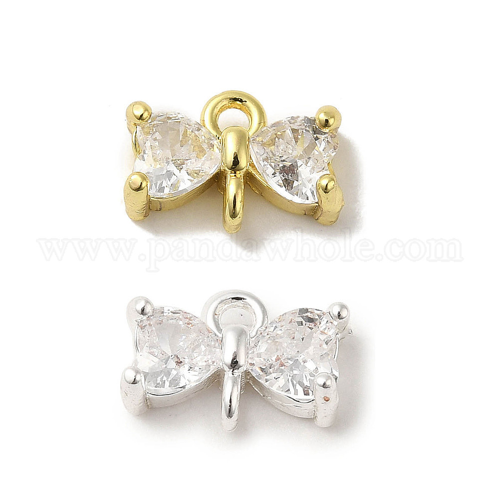 Подвески-соединители с бантом из латуни и прозрачным фианитом