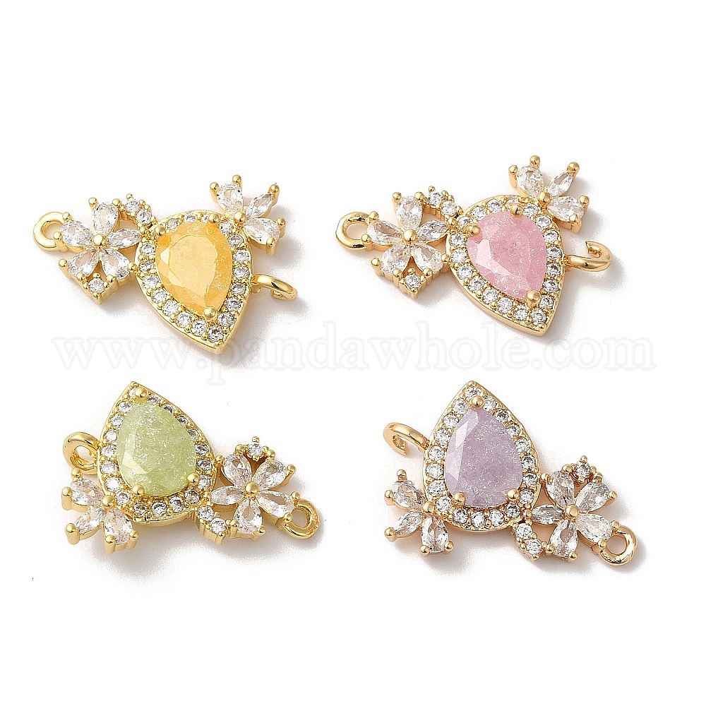 Подвески из латуни, прозрачный кубический цирконий, цветок, каплевидные звенья, соединительные подвески, со стеклом, золотые