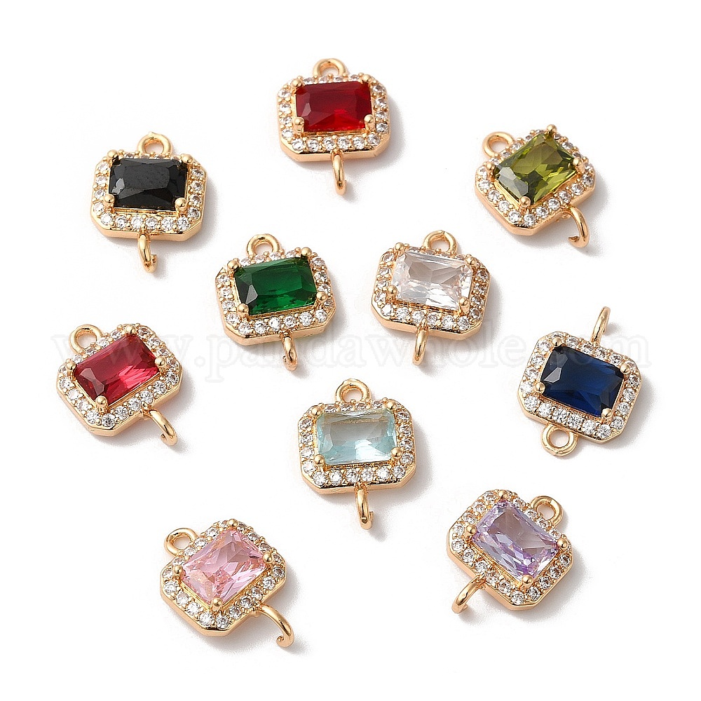 Латунные микро-паве прозрачные циркониевые прямоугольные звенья-подвески-соединители, со стеклом, золотые