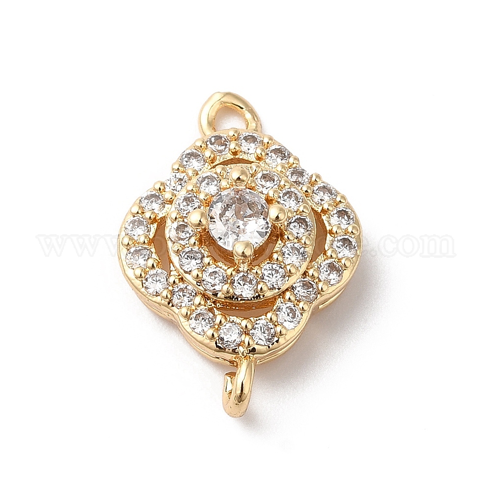 Шармы-соединители из латуни с микропаве из прозрачного кубического циркония, цветок ссылки