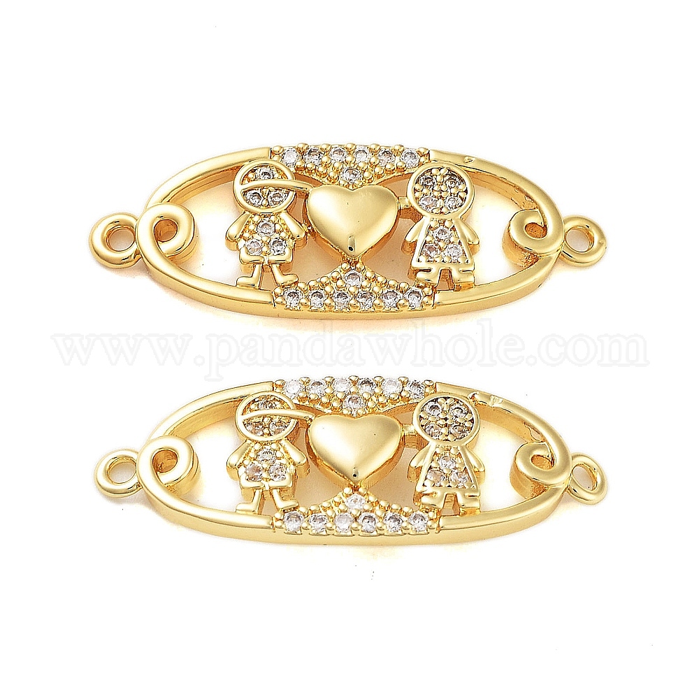 Латунь с покрытием из латуни, микро-паве, прозрачные подвески из кубического циркония, без кадмия и без свинца, овальные связи с девочкой и мальчиком