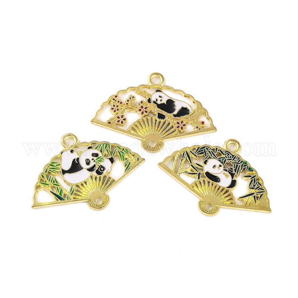 Подвески с позолоченным эмалированным разъемом из сплава, веер со ссылками на панду, без кадмия и без свинца