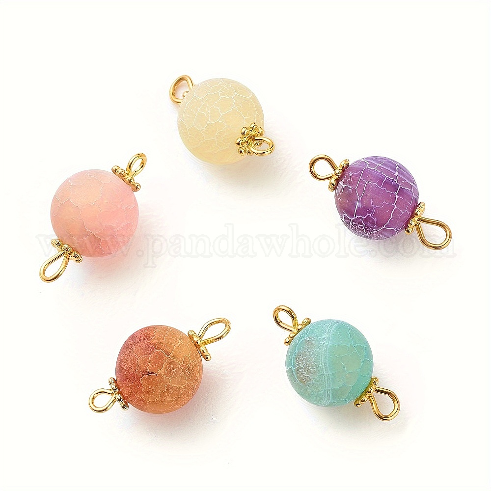 Подвески с круглыми звеньями из окрашенного натурального состаренного агата, с золотистым сплавом и железной фурнитурой