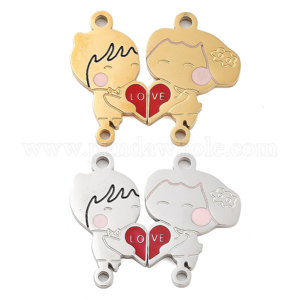 Ионное покрытие ко Дню святого Валентина (IP) 304 набор подвесок с эмалью из огнеупорного кирпича из нержавеющей стали для мужчин и женщин с разъемом в форме сердца любви