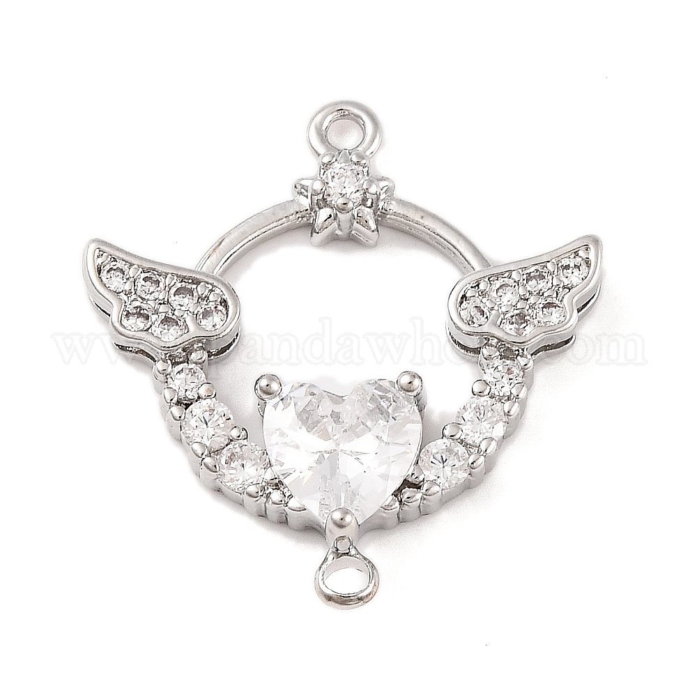 Латунные подвески из прозрачного кубического циркония, без кадмия, без никеля и без свинца, крыло с сердечками