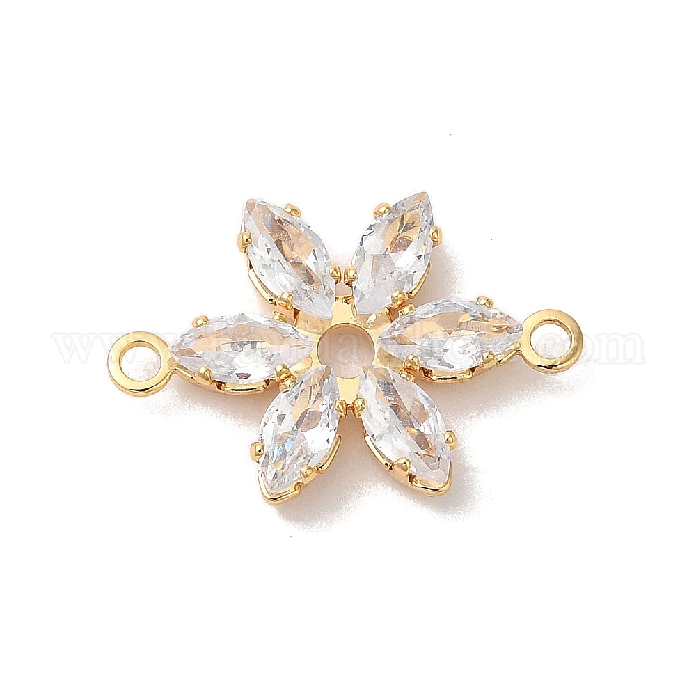 Подвески-коннекторы из латуни с прозрачным кубическим цирконием и цветочными звеньями, без никеля , долговечный