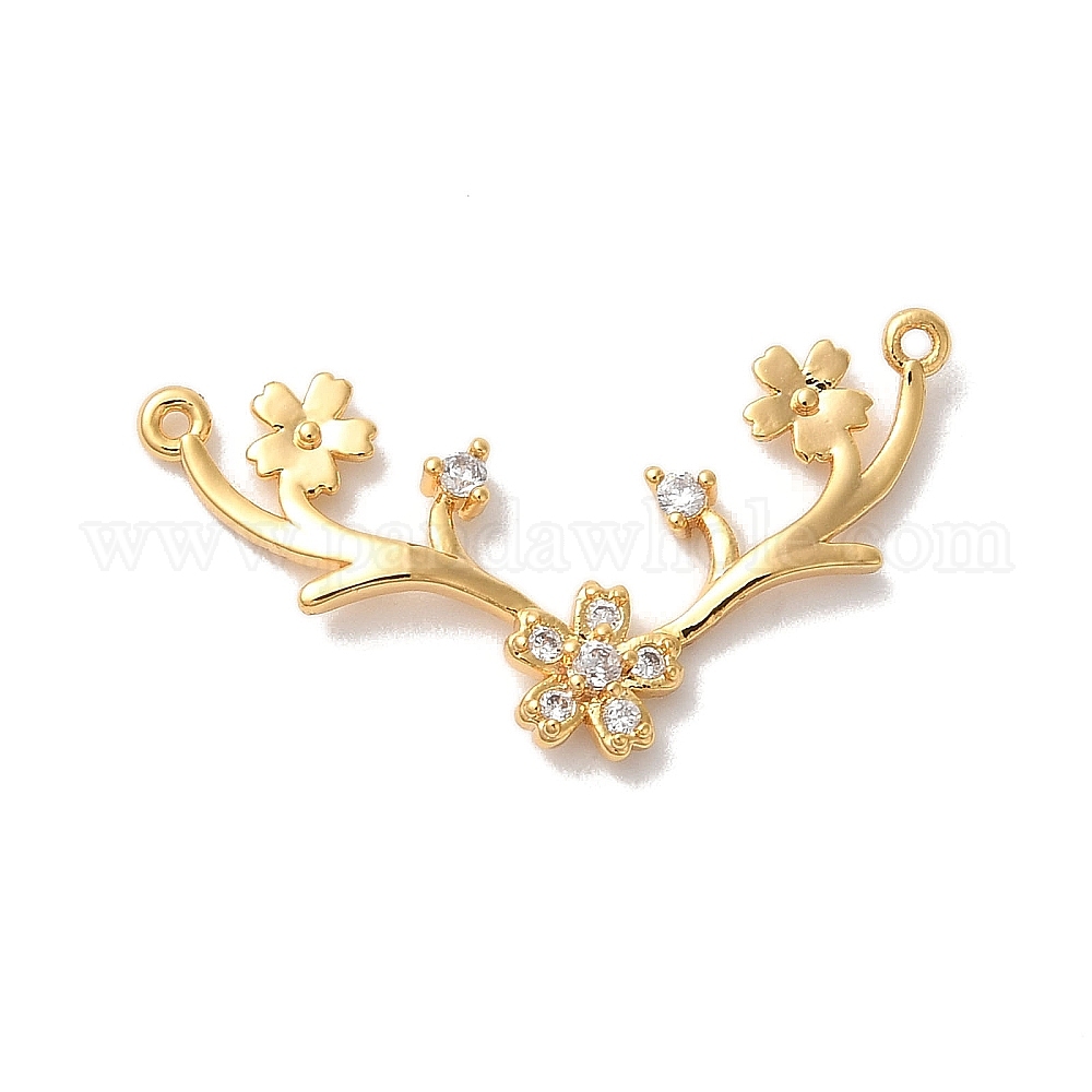 • Настоящее золото 18K Подвески из латуни, прозрачный цветок кубического циркония с звеньями из рога оленя, без никеля , долговечный, реальный 18 k позолоченный, 12x28x2 мм, отверстие : 0.8 мм