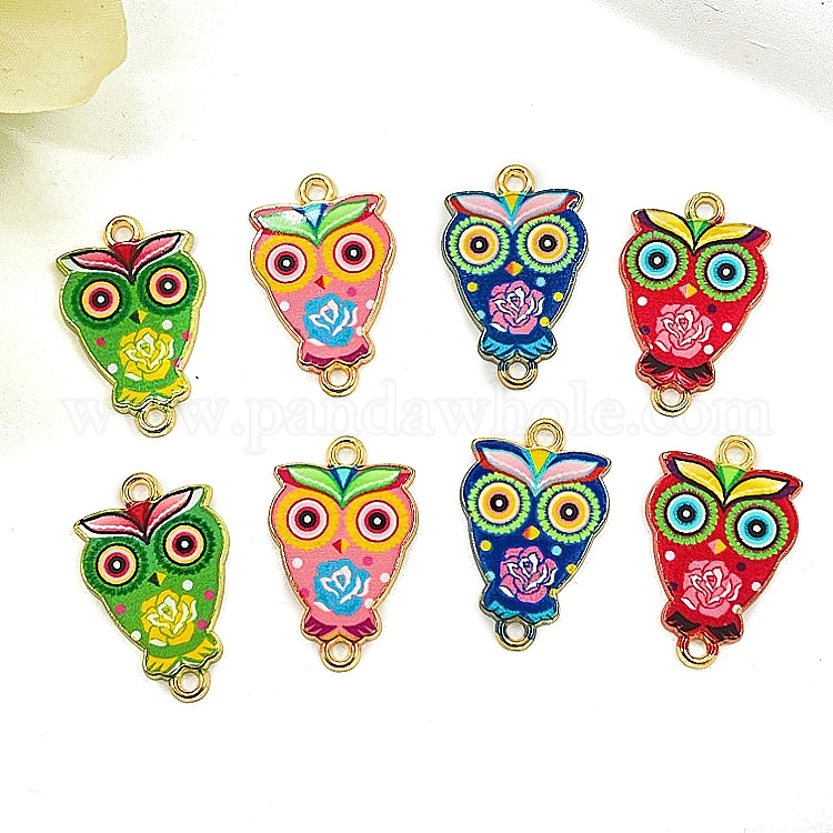 Подвески из сплава эмали, ссылки на цветочную сову, для браслета подвеска аксессуары, золотые (02WEYY)