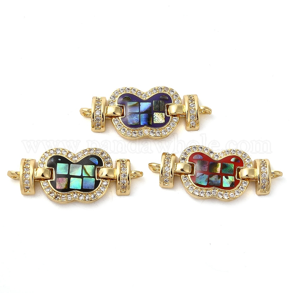 Покрытие стойки латунь микро-паве прозрачный кубический цирконий звенья-бабочки соединительные подвески, с эмалью и ракушкой, реальный 18 k позолоченный, долговечный, без свинца и без кадмия