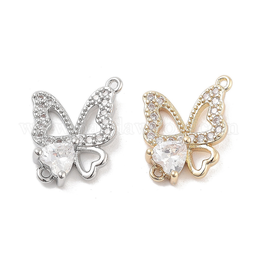 Подвески из латуни с прозрачным фианитом и полым соединителем, без кадмия, без никеля и без свинца, ссылки бабочки