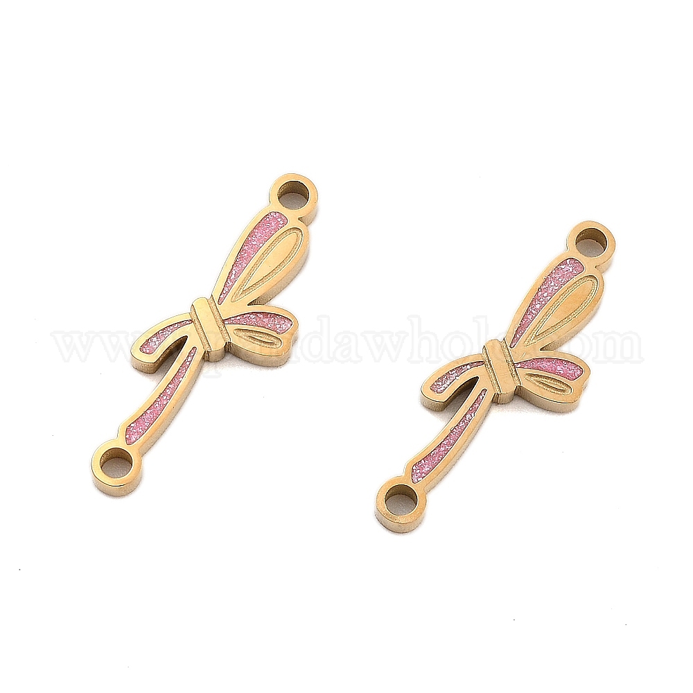Ионное покрытие (ip) 304 подвески из нержавеющей стали, звенья бантом с эмалью фламинго