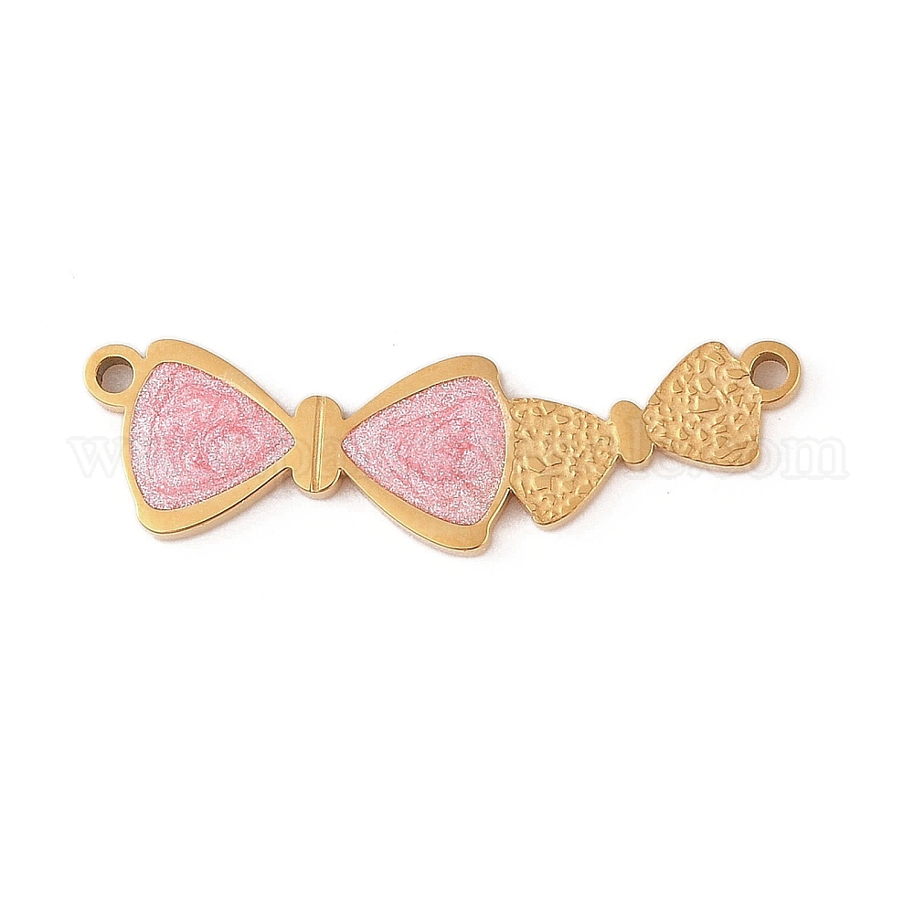 • Золотой Ионное покрытие (ip) 304 звенья из нержавеющей стали, розовая эмаль, подвески с двойным бантом, золотые, 9x30x1.5 мм, отверстие : 1.4 мм