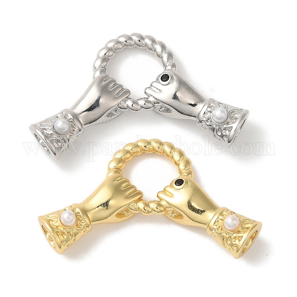 • Настоящее золото 18K Стойка покрытие латунь паве черный кубический цирконий стрелки с кольцами звенья соединительные подвески, с ABS имитации жемчуга, без кадмия и без свинца, долговечный, реальный 18 k позолоченный, 17x29x5.5 мм, отверстие : 7.5 мм