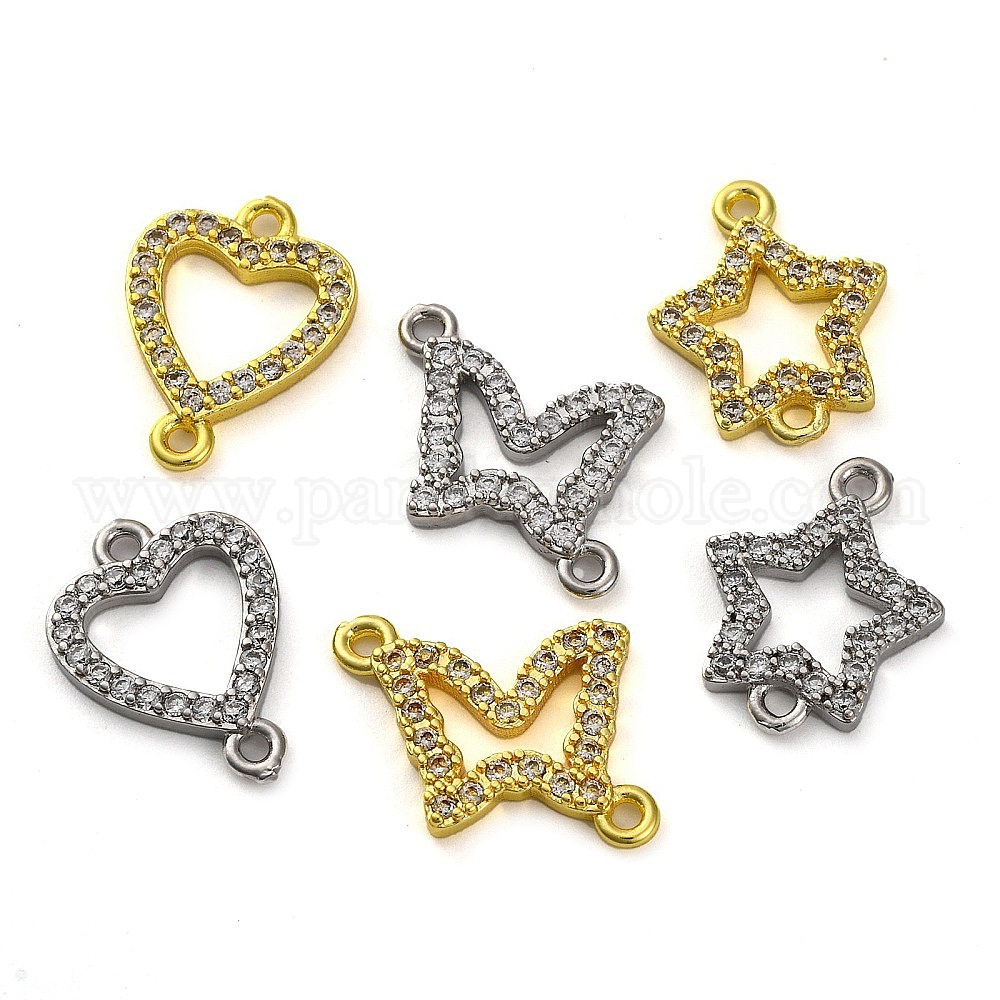 Подвески-коннекторы в форме сердца/бабочки/звезды из латуни с микропаве из прозрачного кубического циркония, долговечный, без свинца и без кадмия