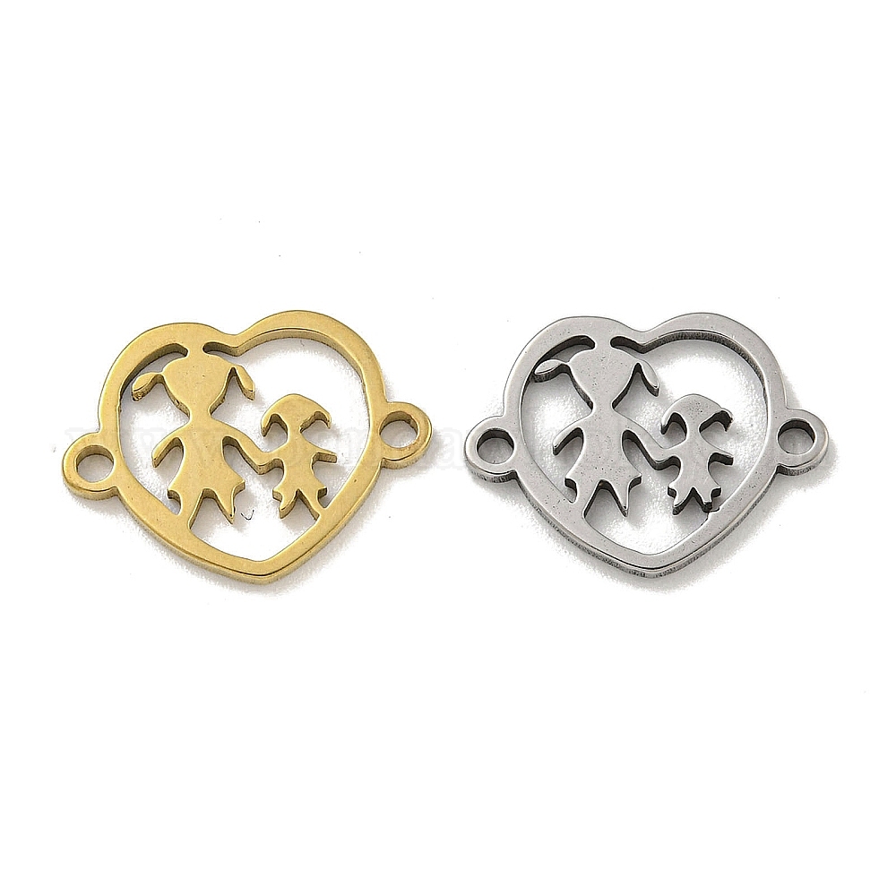 • Настоящее золото 18K Ионное покрытие (ip) День матери 201 подвески из полого соединителя из нержавеющей стали, сердечные связи с матерью и дочерью, реальный 18 k позолоченный, 11.5x15.5x1 мм, отверстие : 1.4 мм