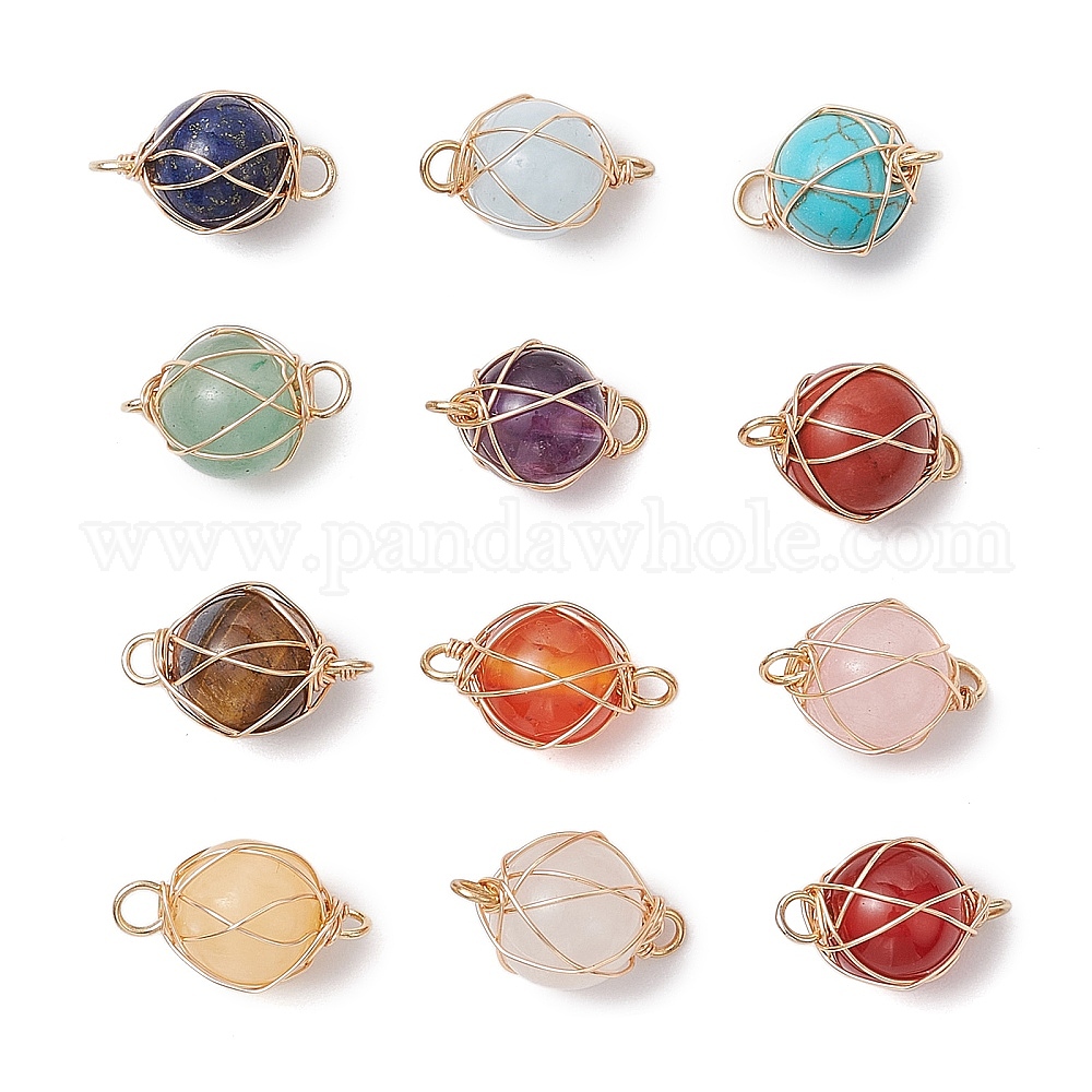 12 шт. 12 стили смешанные драгоценные камни медная проволока обернутая круглая соединительная подвеска, золотые