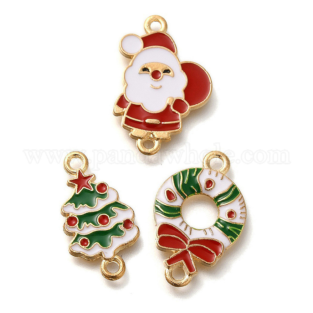 Рождественские сплавы эмалевые звенья, без кадмия и без свинца, Санта-Клаус/рождественская елка/венок, золотые