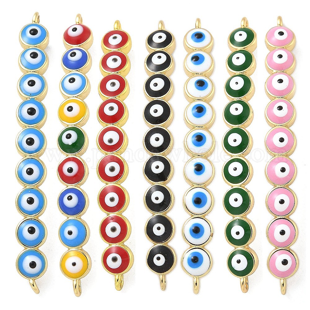 • Разноцветный Стойка покрытие латунь эмаль сглаз соединительные амулеты, плоские круглые звенья из бисера, долговечный, без кадмия и без свинца, реальный 18 k позолоченный, красочный, 38.5x4x6.5 мм, отверстие : 1.2 мм